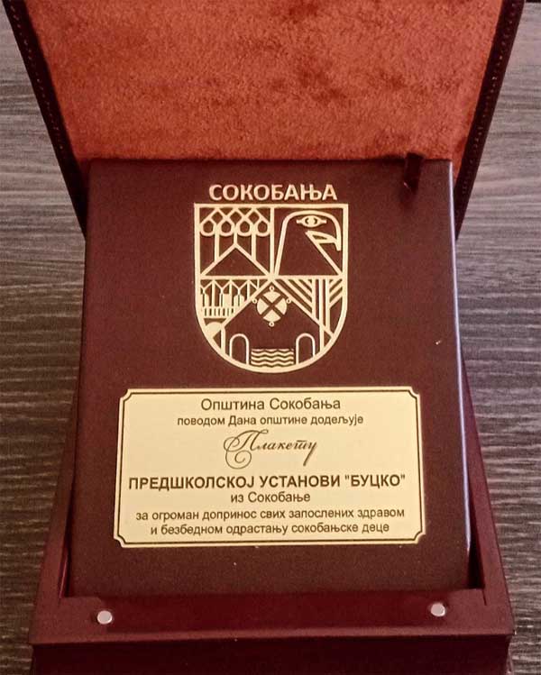 У оквиру свечаности поводом  обележавања Дана општине ПУ „Буцко“ Сокобања додељена је плакета за огроман допринос свих запослених здравом и безбедном одрастању сокобањске деце. Плакету је испред ПУ преузела пом.директора Данијела Дисић.